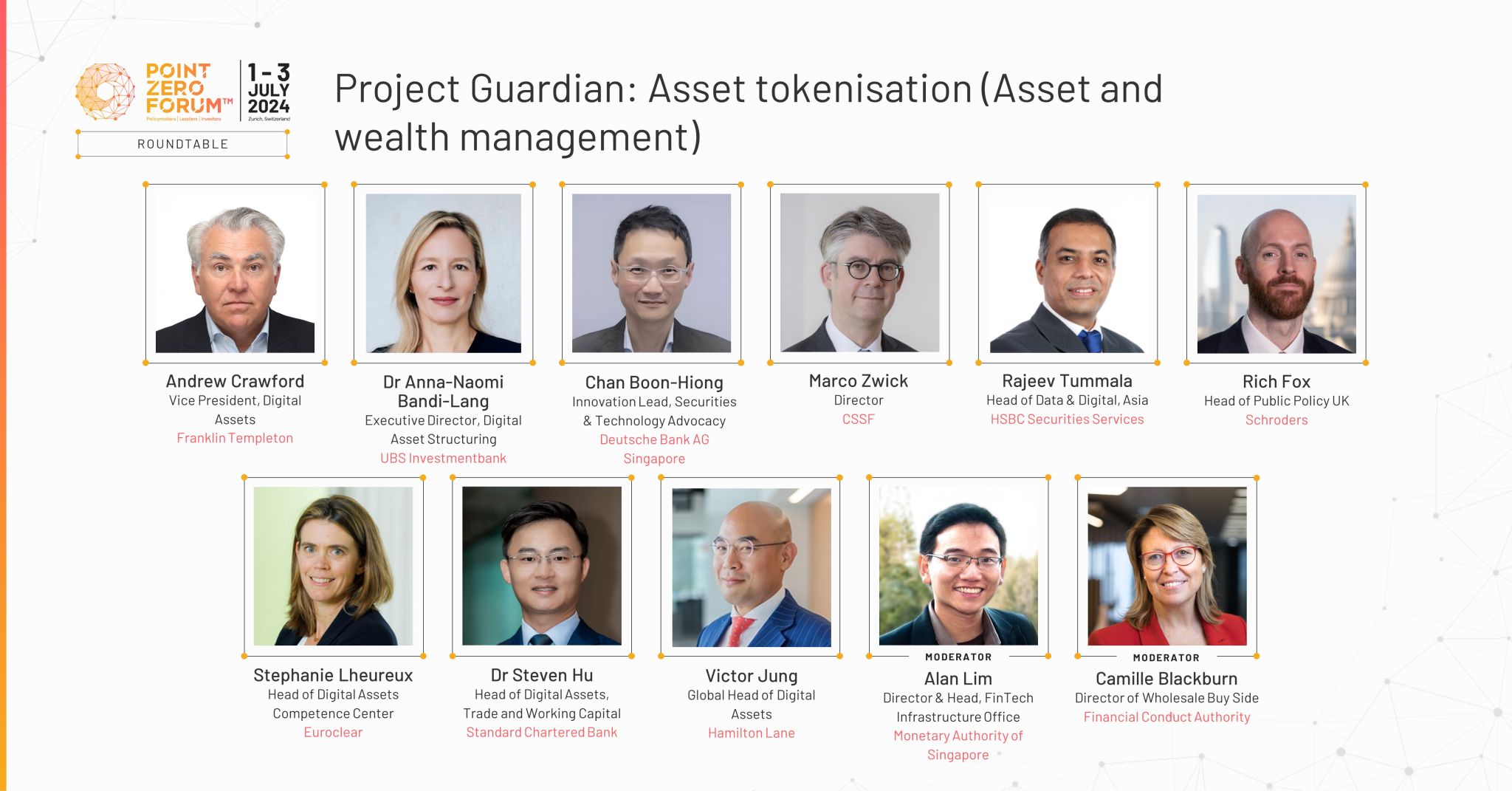 Looking forward to joining a great panel discussion at the Point Zero Forum in Zurich next month to discuss Project Guardian and our experience launching the first tokenized fund in Singapore. #PZF2024 #digitalassets #crypto #blockchain #innovation #pulse #asia #digital #bitcoin #defi Financial Services and the Treasury Bureau (FSTB) Security Token Market 🌴Simon Taylor OKX Standard Chartered Dr. iur. Anna-Naomi Bandi-Lang Boon-Hiong Chan Marco Zwick Rajeev Tummala Richard Fox Stephanie Lheureux Steven Hu Alan Lim Camille Blackburn